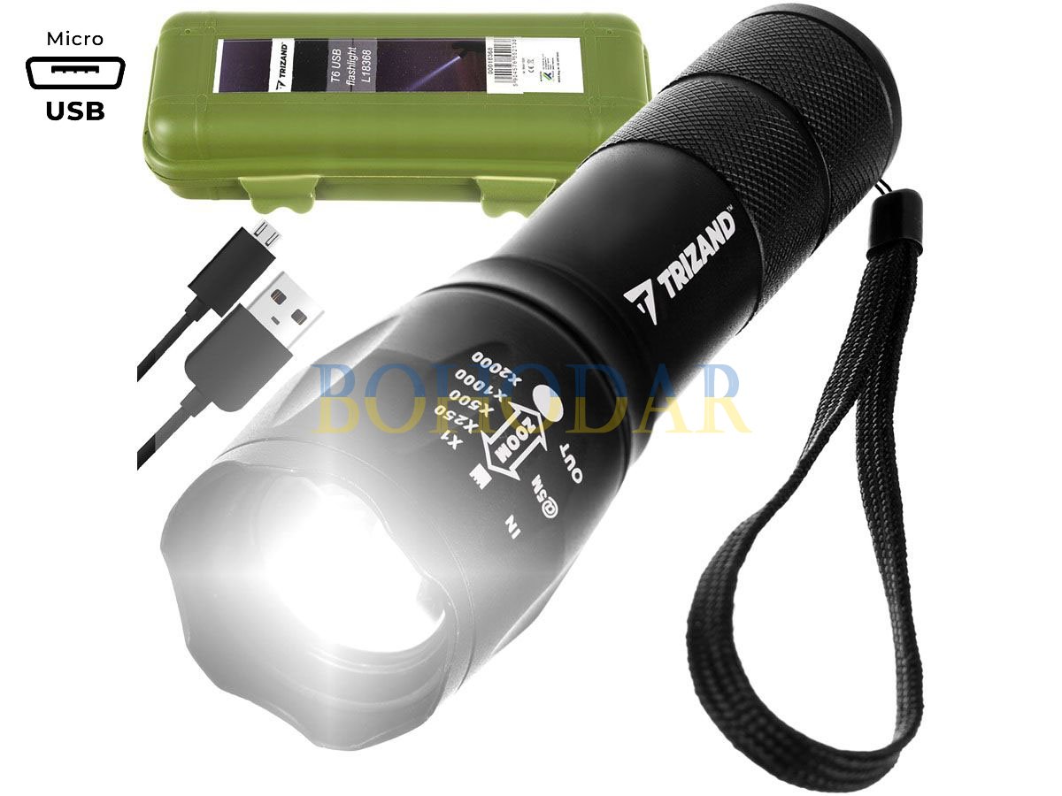 Ліхтарик (ліхтар, фонарик) з Micro-USB TRIZAND L18368 +POWERBANK CREE T6 5100 mAh 1000 Лм 500 м Польща!