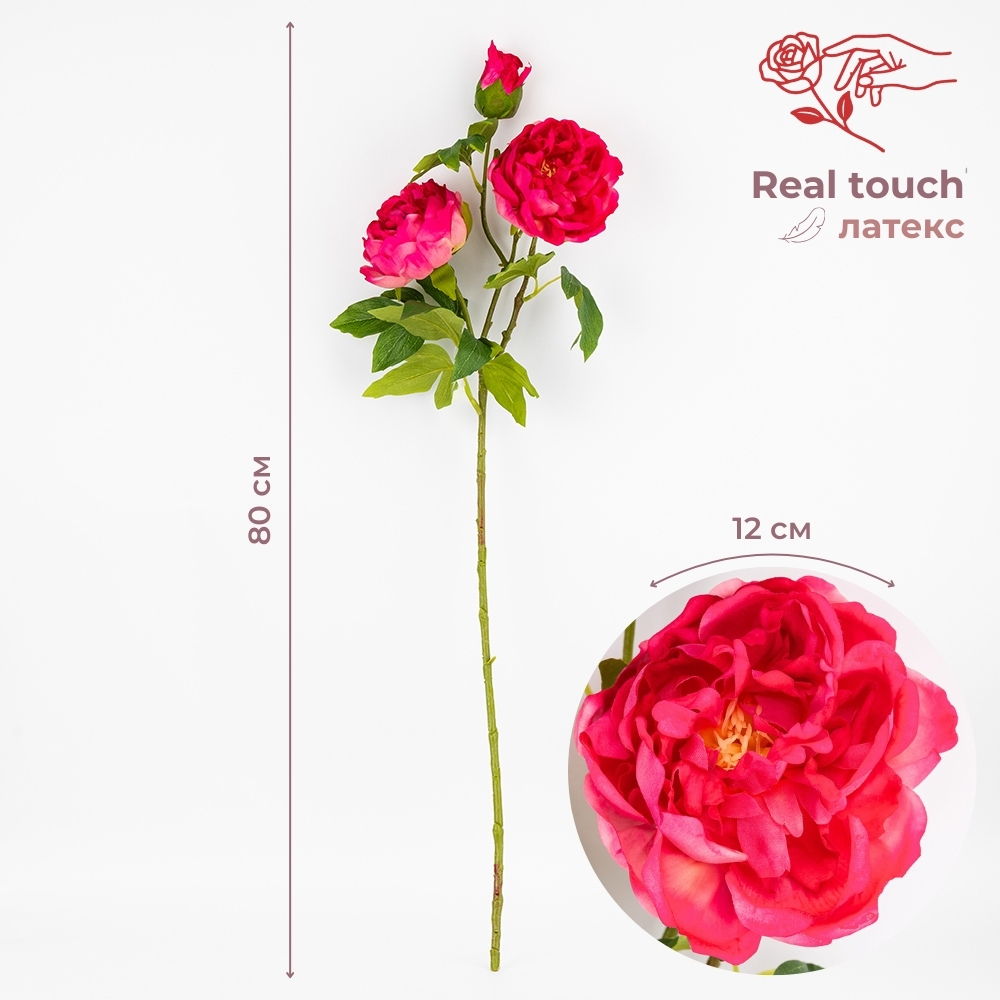 Висота - 80 см. Діаметр найбільшого бутона - 12 см. Матеріал: просиліконена тканина з вологим ефектом! Штучні півонії з колекції «Ніжний дотик» вражають своєю реалістичністю - їх практично неможливо відрізнити від живих. Деталізовані листки та бутони мають природну текстуру та характерну форму півонії, а гнучке стебло дозволяє легко надавати квітці бажану форму. Ідеально підходять для оформлення інтер’єрів, створення флористичних композицій, декоративних аранжувань та фотозон.