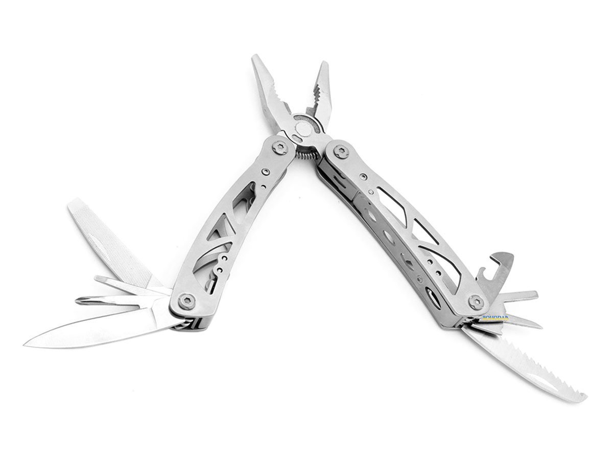 Викрутка, Відкривачка для пляшок, Долото, Кусачки, Ніж, Пила, Пилка для нігтів, Плоскогубці (пасатижі), Шило, І т.п.