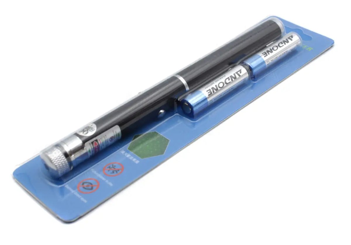 Лазерна указка з дальністю светопотока до 1 км, працює від минипальчиковых батарейок. В комплектації йде насадка яка расеевает лазерні промені. Продається в подарунковому футлярі, лазерна указка добре підходить як для розваг, так і для роботи.