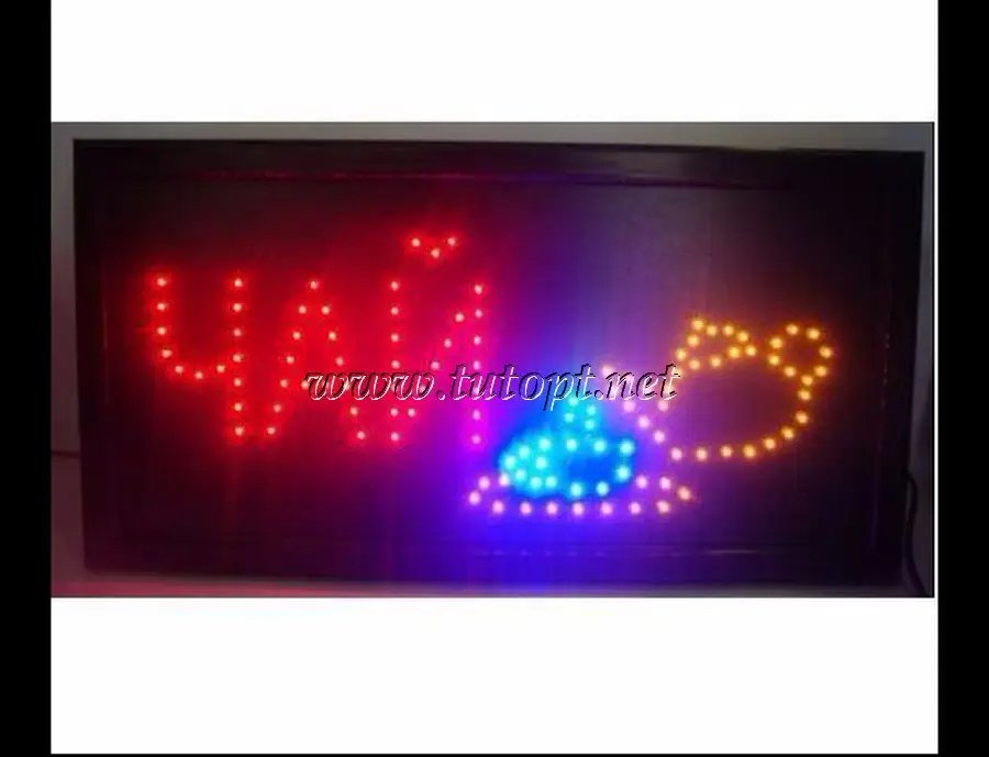 Вывеска Чай Светодиодные таблички применяются в коммерческой сфере для рекламы и привличения внимания к Вашему бизнесу. Как правило их вешают на витражи, фасады в качестве носителей информации. Они представляют собой легкие панели из ПВХ или оргстекла со встроенными светодиодами, с питанием от сети. Лампы устанавливаются в определенной последовательности, создавая слово или знак, например «Чай ». Разнообразие цветов светодиодных элементов позволяет создать яркую красочную табличку, которая мигает и меняет цвет. Світлодіодні таблички це - найоптимальніший спосіб привернути увагу з мінімальними вкладеннями.