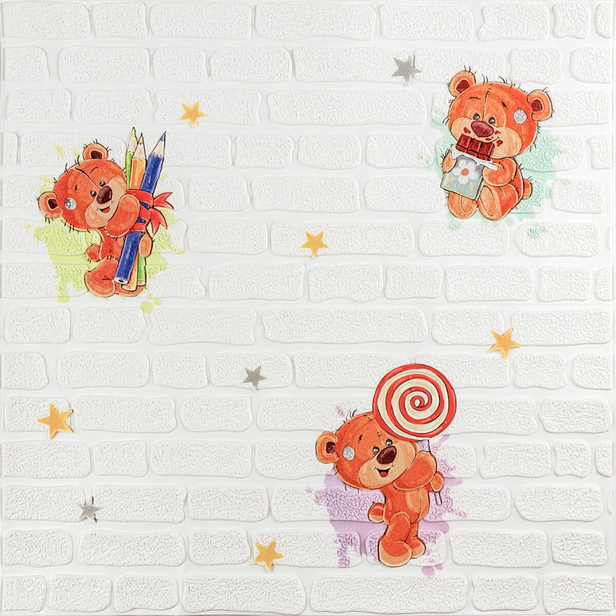 Панель стінова 3D 700х700х4мм Ведмедики на білому фоні SW-00001975